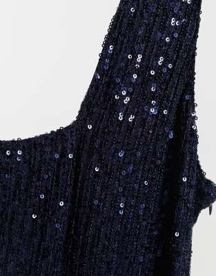 Vestito Longuette Con Scollo Quadrato Blu Navy Con Paillettes Club L London Plus Donna