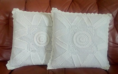 2 Cuscini Bianchi All Uncinetto Cotone Corredo Lavoro A Mano Antico Con Cerniera Ebay