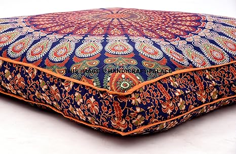 Handicraft Palace Federa Per Cuscino E Pouf Da Pavimento Quadrato Da Meditazione Con Motivo Mandala A Pavone Indiano Amazon It Casa E Cucina