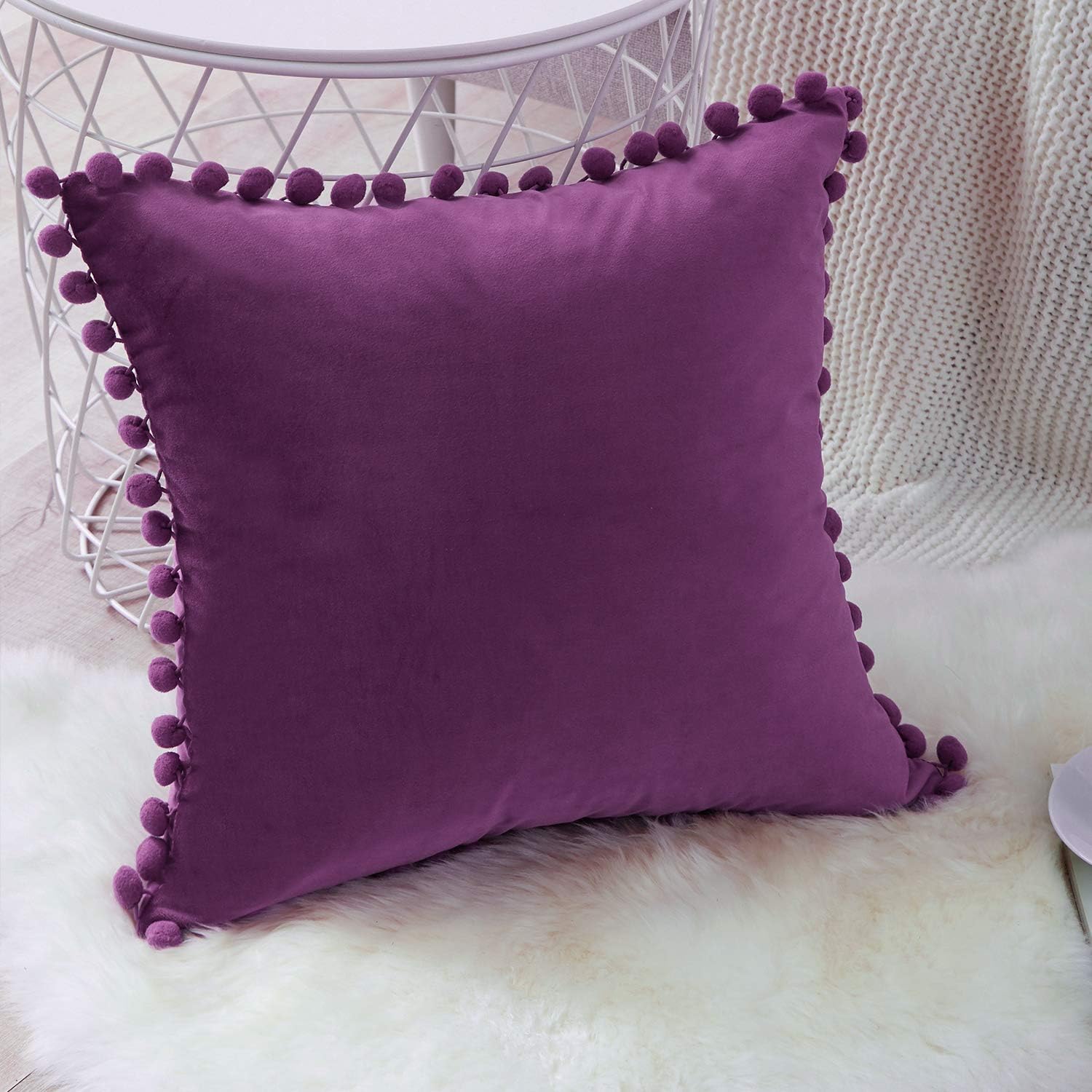 Topfinel Federe Cuscini Divano Quadrati Morbido Di Velluto Con Palline In Tinta Unita Decorativi Cuscino Per Letto Camera Sedia 2 Pezzi 35x35cm Viola Decorazioni Per Interni Casa E Cucina