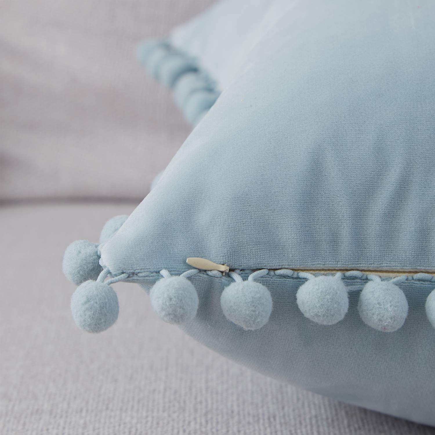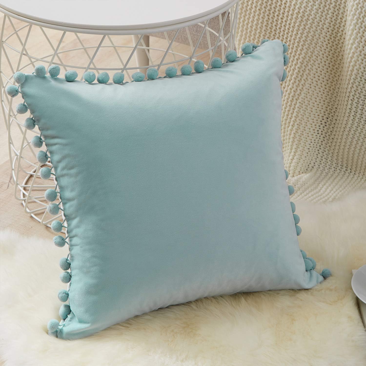 Copricuscini E Federe Casa E Cucina 2 Pezzi 40x40cm Blu Topfinel Federe Cuscini Quadrati Morbido Di Velluto Con Palline A Sfera In Tinta Unita Decorativi Cuscino Divano Letto Camera
