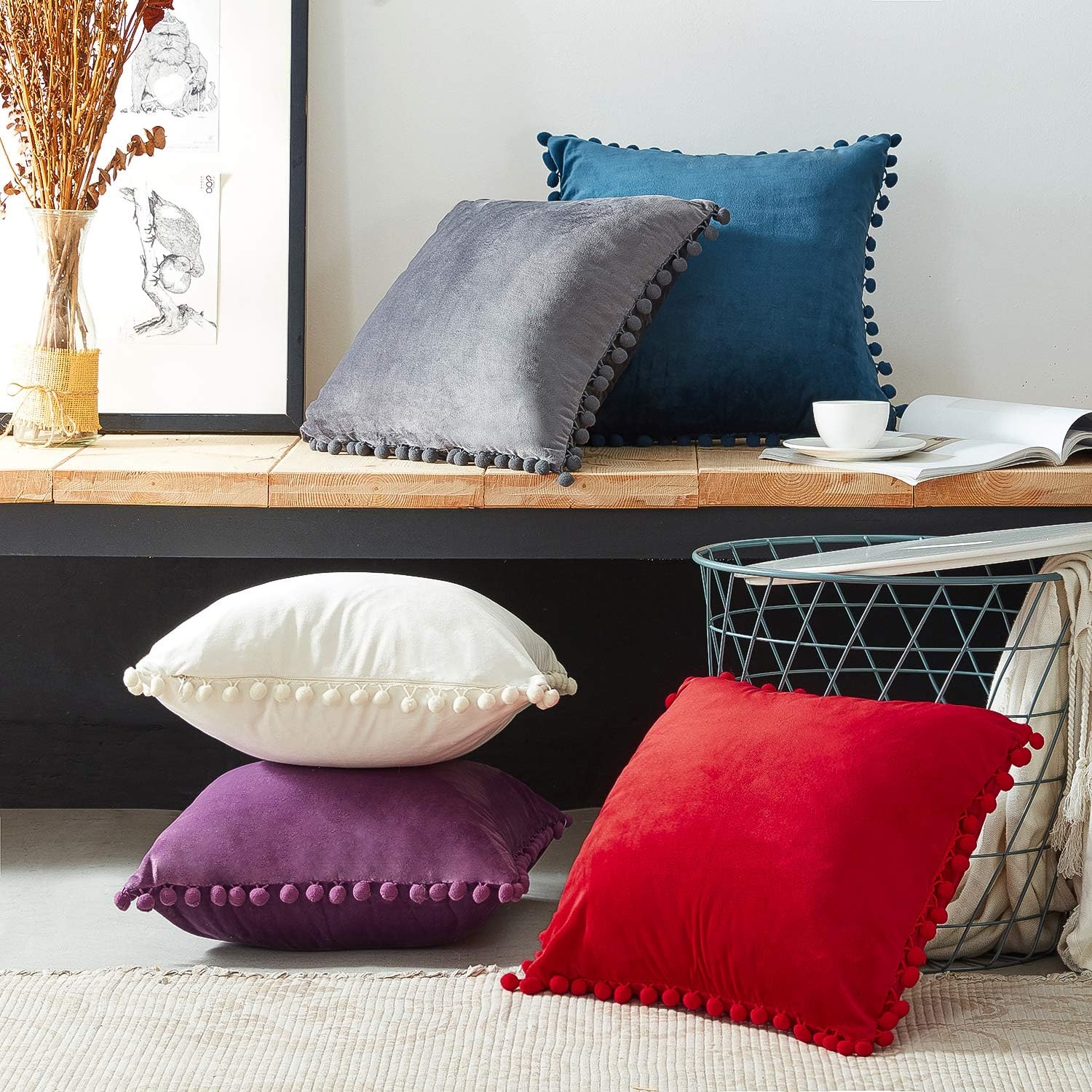 Odjoy Fan Federa Cuscino Arredo Federe Cuscini Quadrati Morbido Con Palline A Sfera In Tinta Unita Decorativi Cuscino Divano Letto Camera Fodere Per Cuscini Decorativi Divano Biancheria Da Letto Casa E Cucina