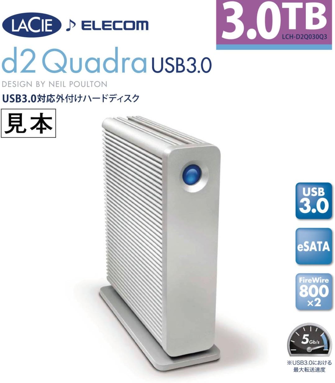 Up to 5gb s 1 x esata 3gb s port. The d2 quadra has got the latest connectivity with usb 3 0 and two firewire 800 interfaces for daisy chaining but it is still fully compatible with esata 3 gb s usb 2 0 and firewire 400. With the new usb 3 0 5gb s interface and up to 4tb the lacie d2 quadra hard disk is the ideal tool for creative professionals who need both fast speeds and large storage capacity.