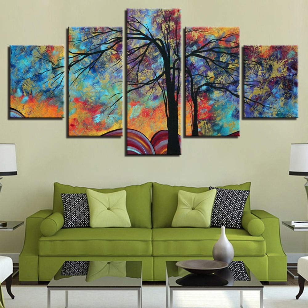 Lucellgh Quadro Multipannello Albero Dipinto Ad Olio Stampa Tela Immagini Moderni Murale Fotografia Grafica Decorazione Da Parete 5 Pezzi 150cmx80cm Disegno Tele