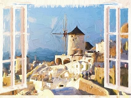Artland Reale Di Vetro Murale Deco Glass Utart Guardando Attraverso La Finestra Su Santorini Paesaggi Vista Dalla Finestra Pittura Blu 60 X 80 X 1 1 Cm B5 X G Amazon It Casa E Cucina