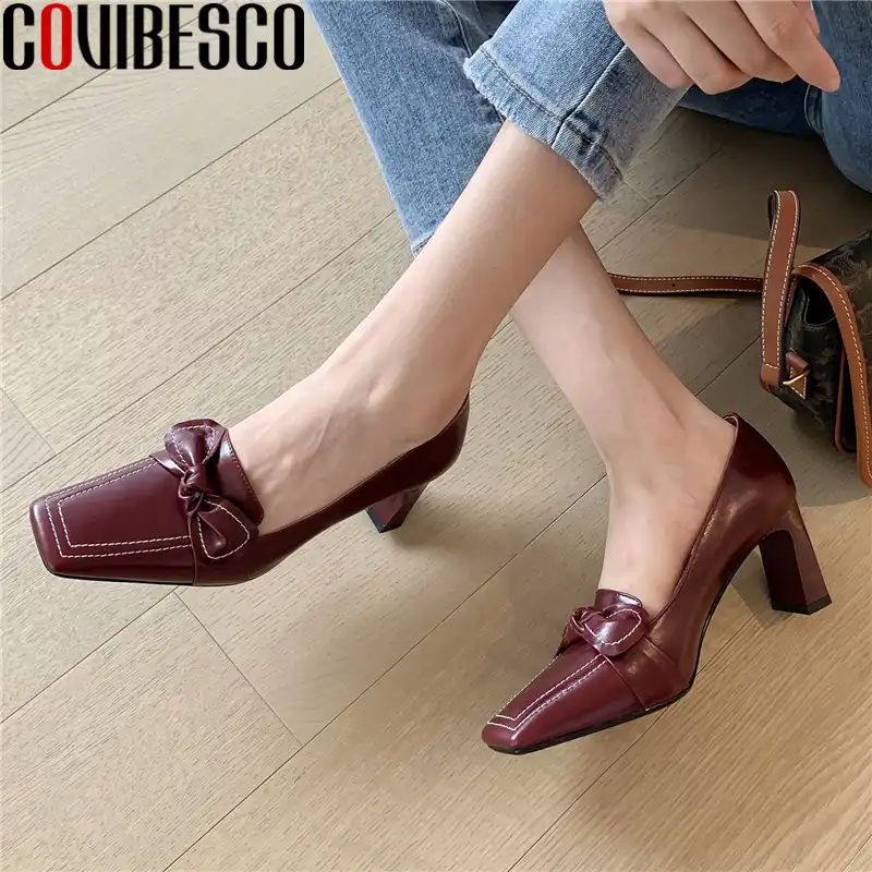 Decollete Covibesco Retro Elegante Punta Quadrata Donna Primavera Vera Pelle Tacchi Alti Scarpe Donna Piu Recenti Decollete A Farfalla Ufficio Pumps Da Donna Aliexpress