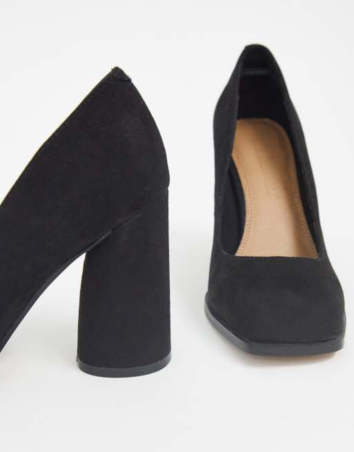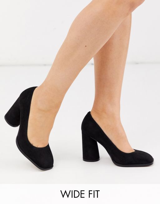 Asos Design Wide Fit Pinky Decollete Con Tacco Largo E Punta Quadrata Nere Asos