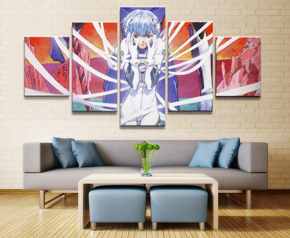 Hnbdh Stampe E Quadri Su Tela 5 Pannelli Anime Neon Genesis Evangelion Eva Poster Wall Art Fumetto Home Decor Hd Pictures Stampa Pittura No Frame Size 1 Arte Dipinti