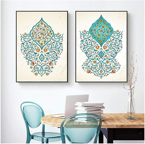 Amazon Com Zxianc Ornato Arabesco Islamico Turchese Floreale Parete Arte Dipinti Su Tela Islam Musulmano Quadri Poster 50x70cm Senza Cornice Posters Prints