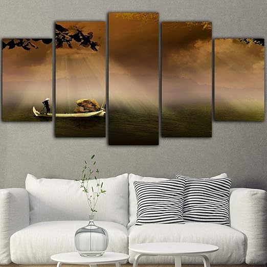 Canvas Print Picture Sunset Boat Modern Wall Art Painting Pictures 5 Piece Prints On Canvas Artwork For Living Room Bedroom Home Office Decorations No Frame 200x100cm Amazon Co Uk Kitchen Home