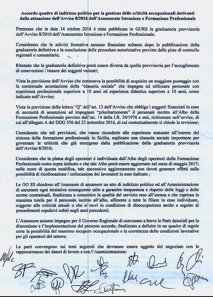Unione Lavoratori Liberi Formazione Professionale Accordo Quadro Assessorato Formazione E Oo Ss