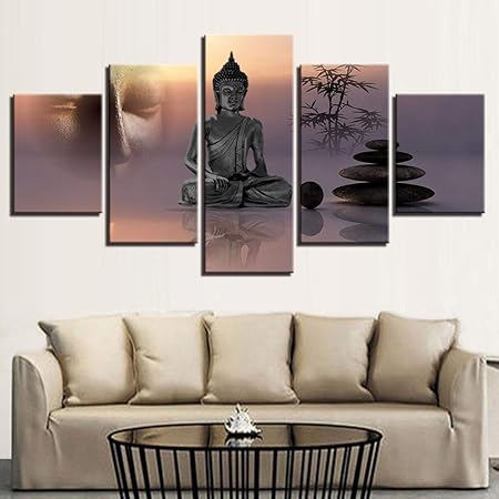 Myonly 5 Pannello Tela Stampato Wall Art Poster Quadro Su Tela Poster Ad Alta Definizione Figura Di Buddha Modello Pittura A Olio Su Tela Da Parete Home Decor Amazon It Casa E Cucina