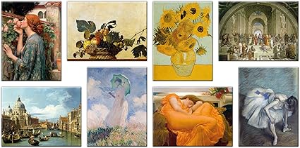 Luxhomedecor Quadri Famosi 8 Pezzi 40x30 Cm Stampa Su Tela Con Telaio In Legno Waterhouse Caravaggio Van Gogh Raffaello Canaletto Monet Leighton Degas Amazon It Casa E Cucina