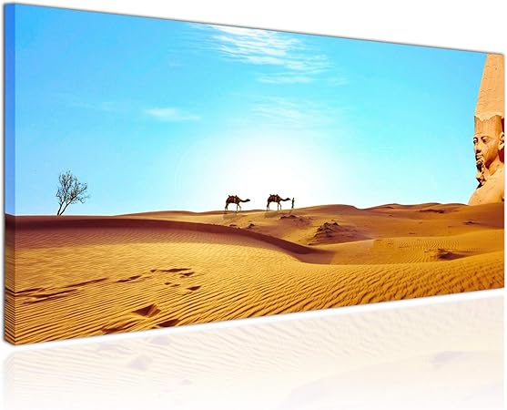 Topquadro Quadro Xxl Stampa Su Tela 100x50cm Deserto Di Sabbia Cammelli E Piramidi Egitto Decorazioni Interni Immagine Panoramica Amazon It Casa E Cucina