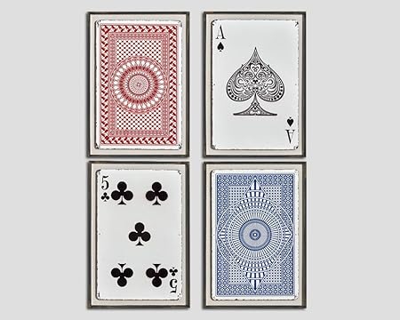 Dialma Brown Framed 3d Wall Art Picture Vintage Playing Cards Set 4 Pcs Masse 34 X 24 X 3 Cm H X L X D Amazon De Kuche Haushalt