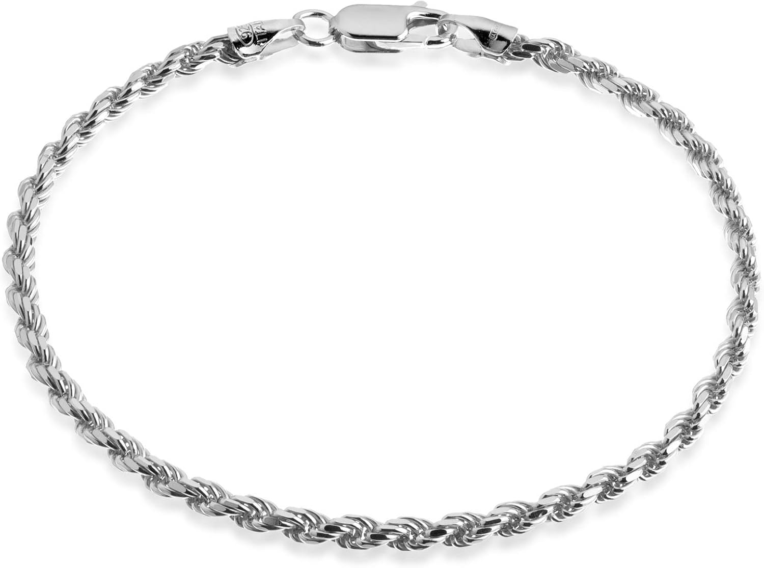 Amazon Com Quadri Sterling Silver 3mm Solid Diamond Cut Rope Chain Bracelet For Men Women 925 Italy 6 5 9 Inch Clothing