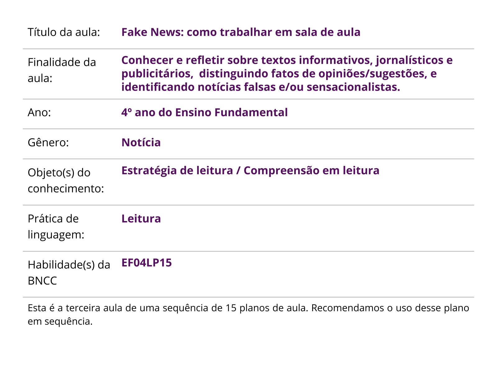 Plano De Aula 4º Ano Lingua Portuguesa Fake News Como Trabalhar Em Sala De Aula