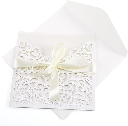 Surepromise 10pz 15x15cm Inviti Carta Vuota Partecipazione Nozze Matrimonio Feste Con Nastro Busta Quadrata Amazon It Casa E Cucina