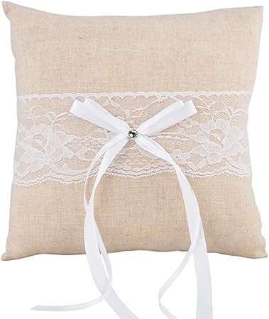 Dimensioni Di 20 X 20 Cm Con Pizzo Bianco E Fiocco Di Colore Beige Cuscino Quadrato Per Le Fedi Nuziali Escuelasoulsurf Cl