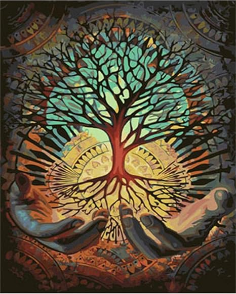 Ysdecor Dipingere Con I Numeri Kit Immagine Mani Albero Fai Da Te Paesaggio Acrilico Quadro Dipinto A Mano Con Numeri Art 40x50cm Amazon It Casa E Cucina
