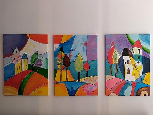 Trittico Di Quadri Dipinti A Mano Citta A Colori Amazon It Handmade