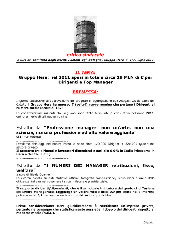 Notizie Dalle Valli Del Reno E Del Setta Gruppo Hera 19 Mln Di Per Dirigenti E Top Manager