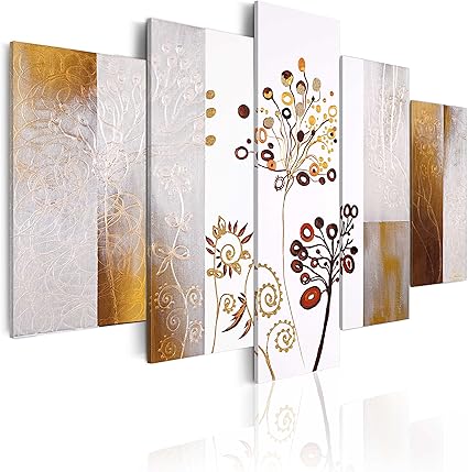 Murando Quadro Dipinto A Mano Fiori 85x55 Cm 5 Parti Quadri Moderni Su Tela Pittura Disegni Unici Ed Irripetibili Motivi D Autore Decorazione Da Parete Oro Grigio Bianco 22418 Amazon It Casa E Cucina