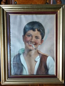 Quadro Con Ragazzo Che Fuma Vintage Collezione Privata Ebay