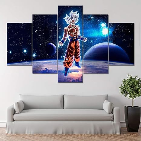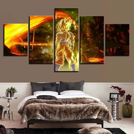 Fbewan 5 Pezzi Set Stampe E Quadri Su Tela Dipinti Cartoon Dragon Ball Goku Super Saiyan Decorazione Per La Casa Wall Art Frameless Amazon It Casa E Cucina