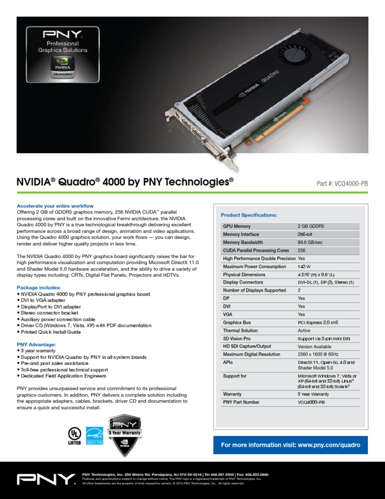 Nvidia Quadro 4000 By Pny Technologies Part Vcq4000 Pb Windows Vista Media Technology