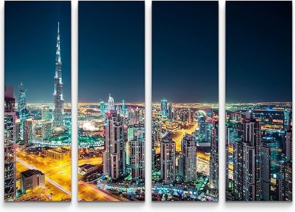 Paul Sinus Art Quadro Di Qualita Skyline Di Notte Dubai Uae Su Tela Pronta Da Appendere Stampa Su Tela 4x90x30cm Amazon It Casa E Cucina