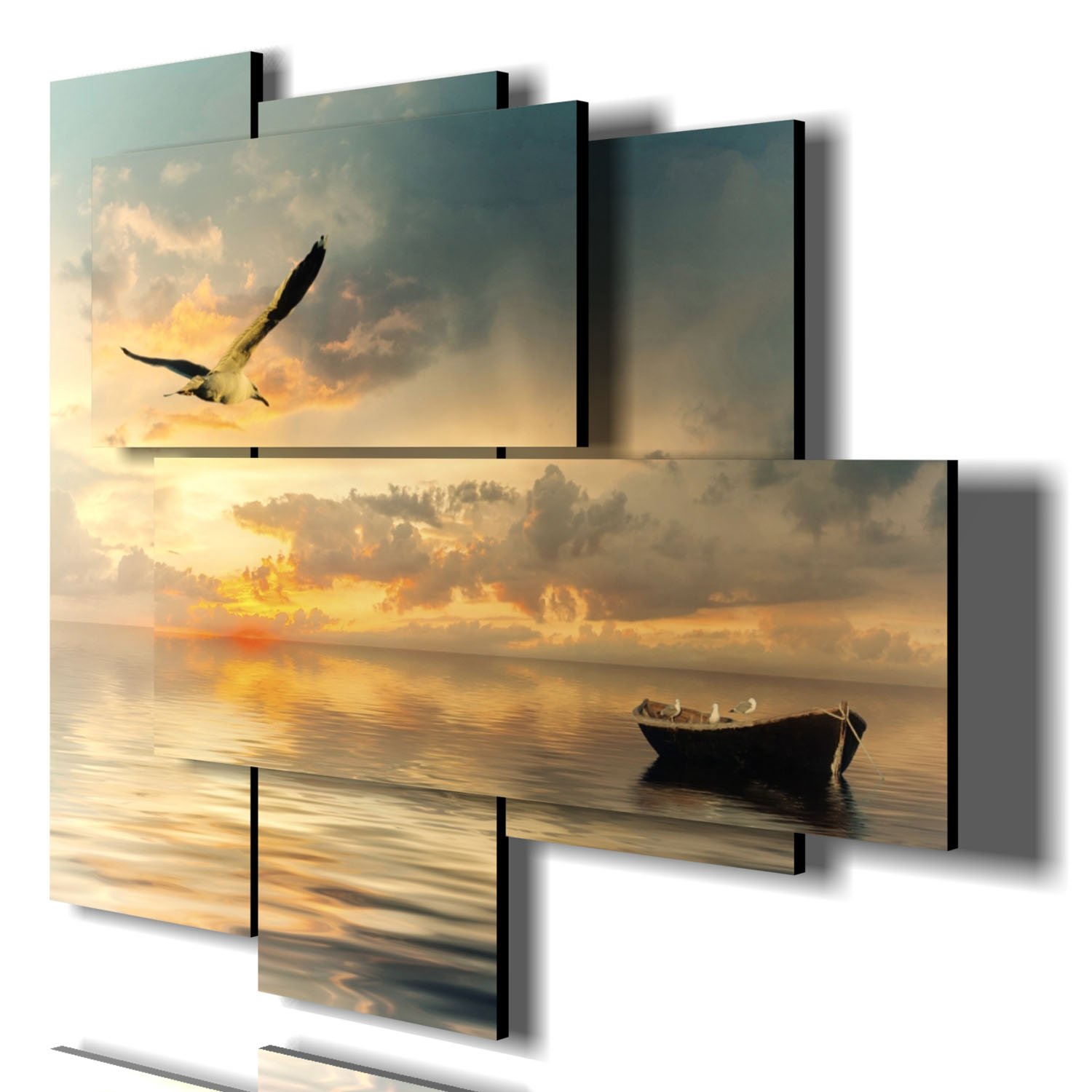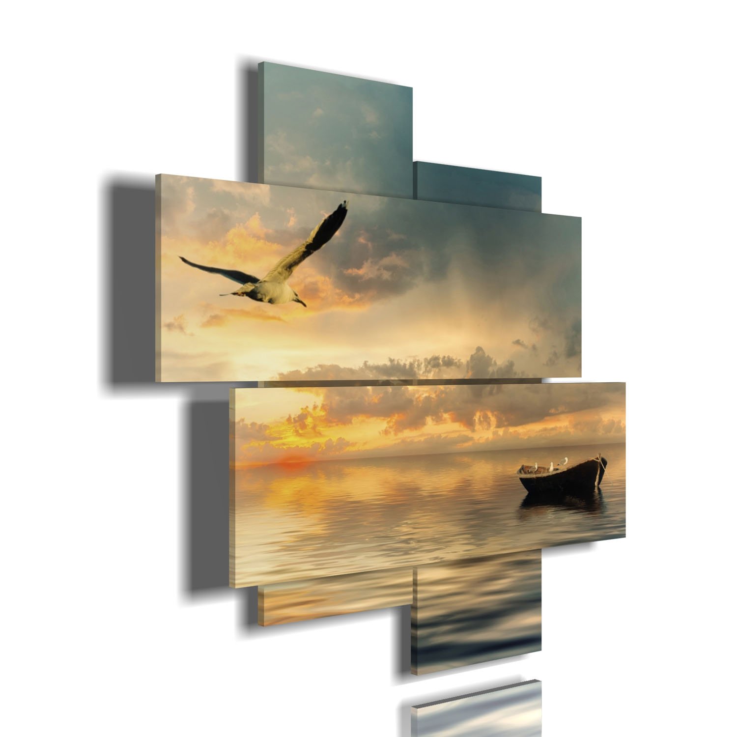 Quadro Mare Barca E Gabbiano Al Tramonto 3d Design Duudaart