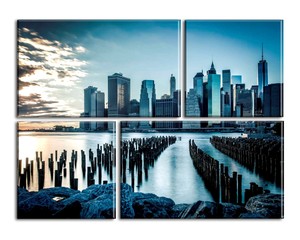 Quadri Moderni Tela 200x100 4pz Paesaggio New York Panorama America Arte Arredo Ebay