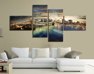 Quadri Moderni Tela 200x100 4pz Skyline New York Manhattan Ponte Di Brooklin Ebay