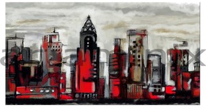 Quadri Moderni Paesaggi Dipinto A Mano Citta New York Rosso Grigio Salotto Ebay