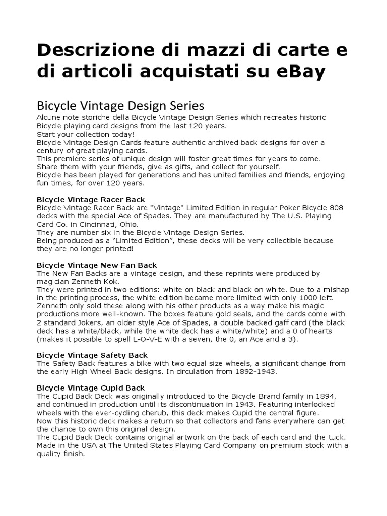 Descrizione Di Mazzi Di Carte E Di Articoli Acquistati Su Ebay Playing Cards Leisure