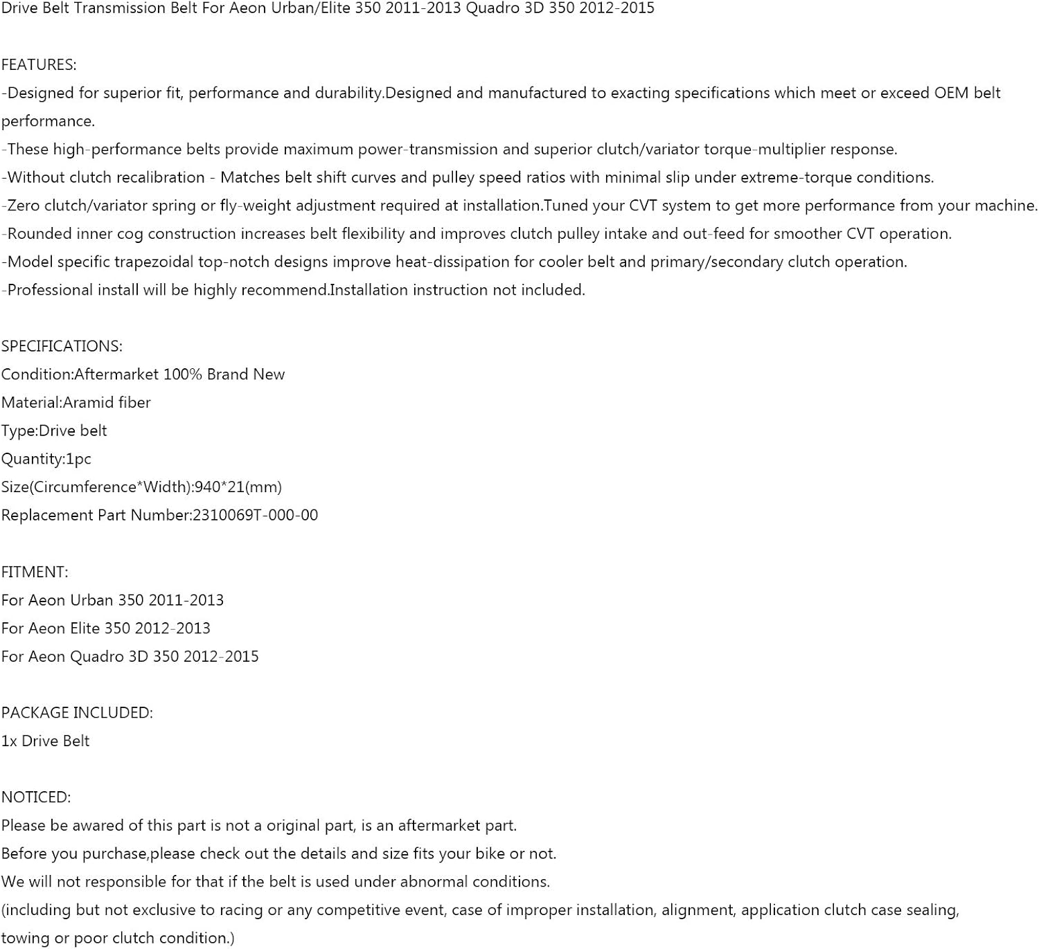 Drive Belt 940oc X 21w For Ae On Urban Elite Quadro 3d 350 11 15 Scooter Amazon Co Uk Car Motorbike
