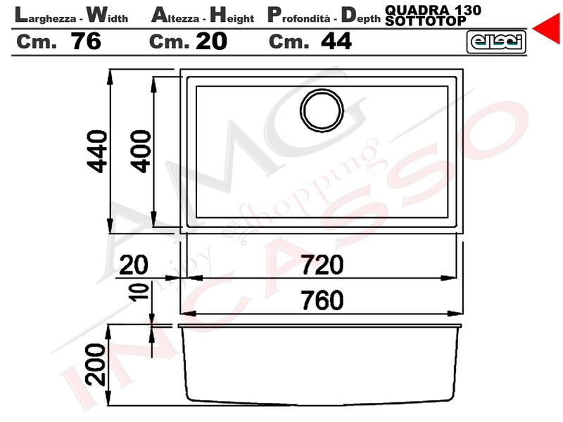 Lmq13077bso Elleci Lavello Quadra 130 76x44 1 Vasca Chromium 77 Sotto Top Cappe E Lavelli Lavelli Clickforshop