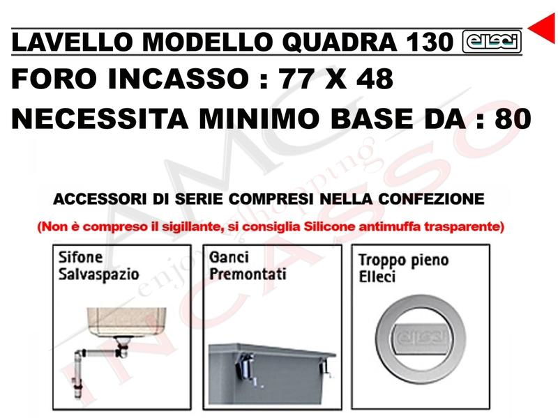 Elleci Quadra 130 Lavello Da Incasso 1 Vasca Dimensioni 79 X 50 Cm Colore Nero Eprice