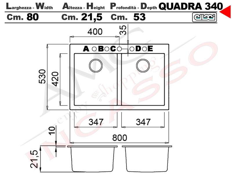 Elleci Quadra 340 Lmq34079btp Quadra Standard Built In Sink 80 X 53 Metaltek Aluminum Vieffetrade