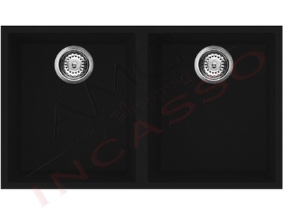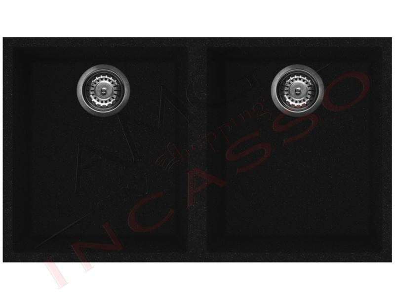 Lavello Elleci Incasso 2 Vasche 76x43 5 Quadra 350 Sottotop Keratek Plus Nero Assoluto Lkq35086bso
