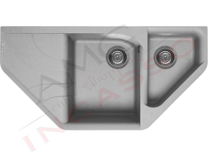 Vendita Elettrodomestici Roma Elleci Lkq35097bso Quadra 350 Sottotop Lavello 2 Vasche In Keratek Light Grey K97 Kera