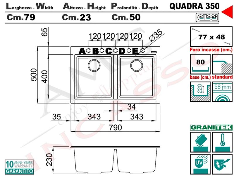 Elleci Lmq35079bso Quadra 350 Sottotop Lavello Kasatua