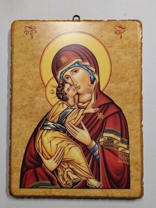 Quadro Icona Della Madonna Con Bambino Stampa Su Legno Cm 40 X 30 Artigianale Ebay
