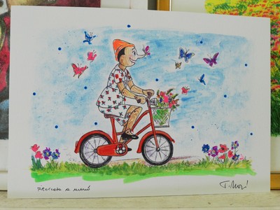 Teo Mori Serigrafia Cornice Pinocchio Bicicletta Farfalle Quadro Grecoarte Ebay