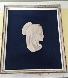 Quadro A Firma Eros Pellini Viso Di Madonna In Metallo Argentato Su Sfondo Blu Ebay
