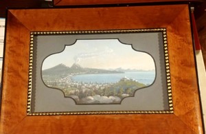 Gouache Quadro Napoli Vesuvio Eruzione Mare Dell 800 Con Cornice Noce Ebay