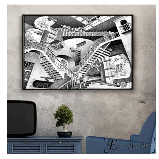 Giallobus Quadro Stampa Su Tela Canvas M C Escher Relativity 70 X 70 Cm Amazon It Casa E Cucina