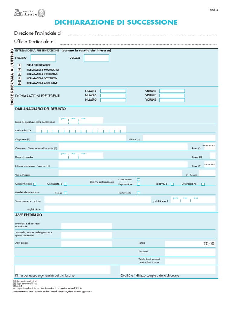 Modello 4 Successione Editabile