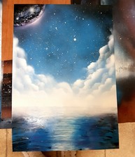 Pittura Con Bombolette Spray Su Foglio A3 Rappresentazione Pianeta Terra E Luna Olio Su Tela Pittura Pittura Su Tela